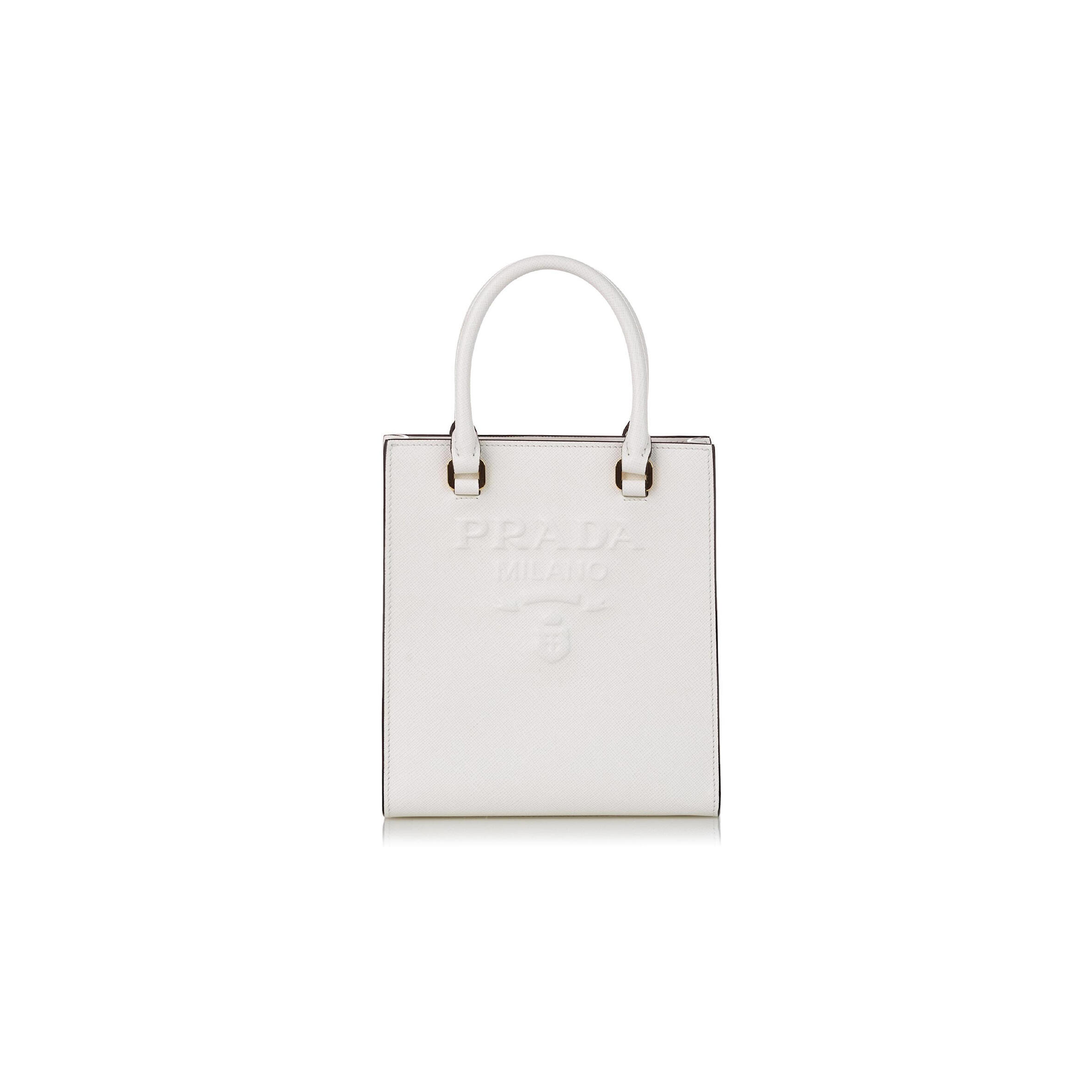 Pra*a WHITE SMALL SAFFIANO LEATHER SATCHEL 1BA333 (19*17*6cm) Master Quality