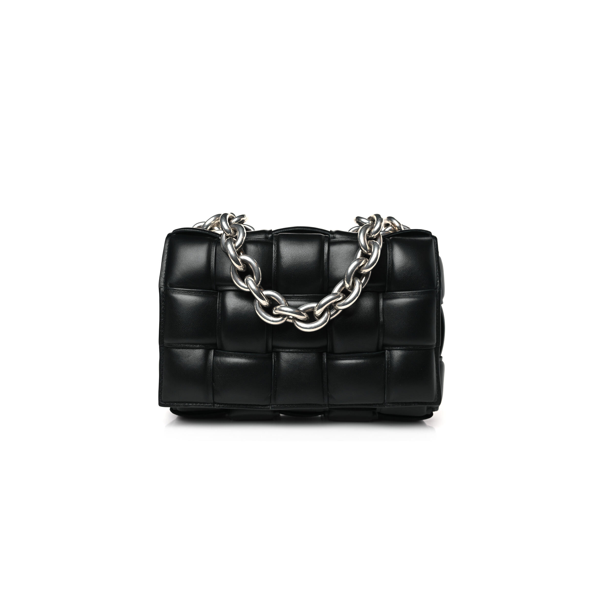 B0tt*ga Ven*ta LAMBSKIN MAXI INTRECCIO PADDED CHAIN CASSETTE CROSSBODY BAG BLACK (25*17*8cm) Master Quality