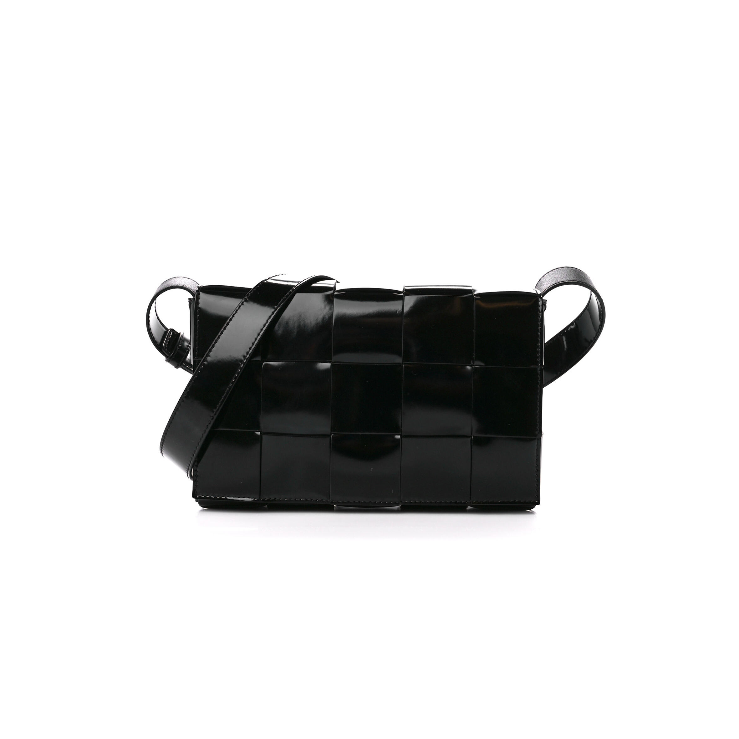 B0tt*ga Ven*ta PATENT MAXI INTRECCIATO CASSETTE CROSSBODY BAG BLACK (22*15*4cm) Master Quality