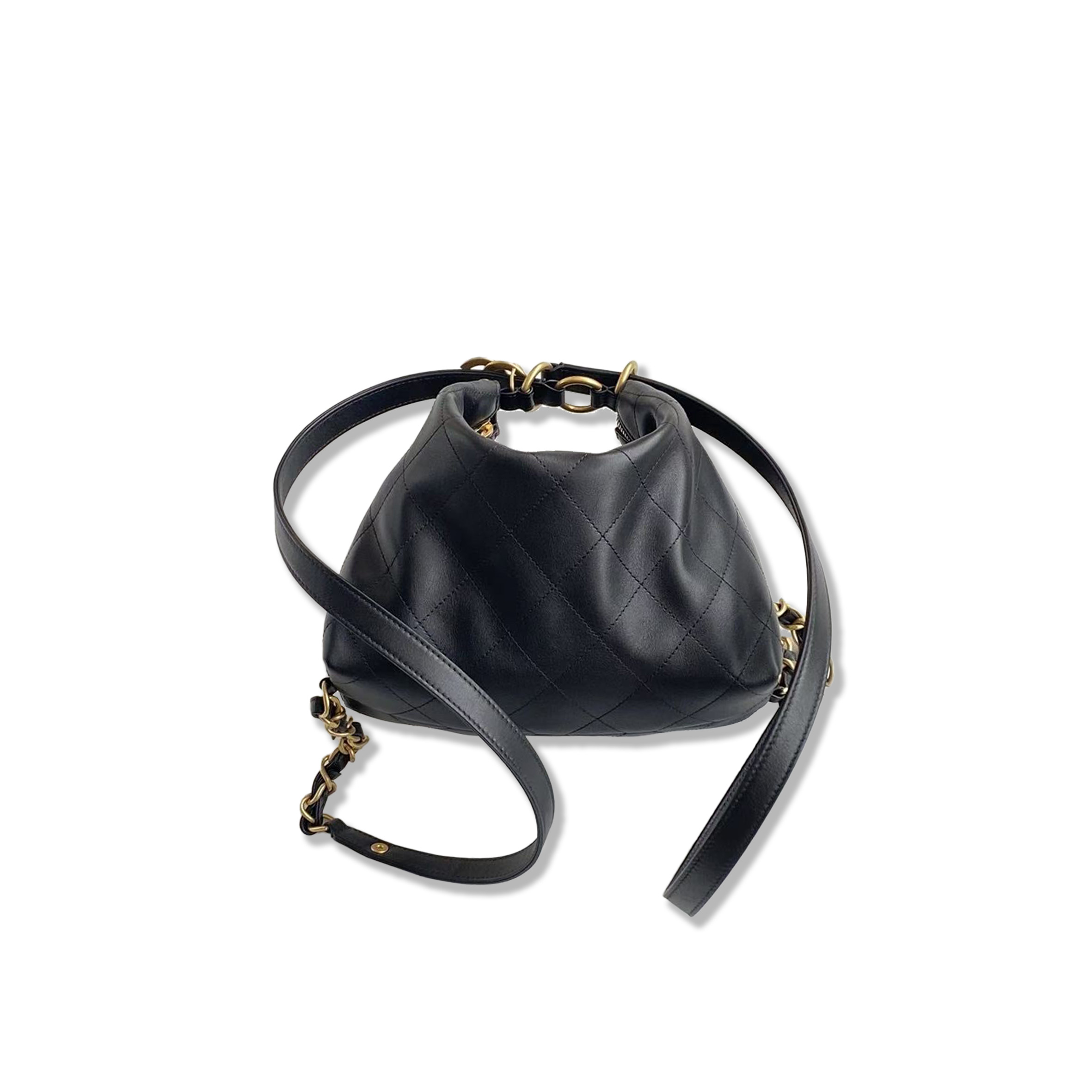 Ch**el 25 HOBO BAG BLACK SOFT CALFSKIN LEATHER BACKPACK 2965681 (31*20*8.5cm) Master Quality