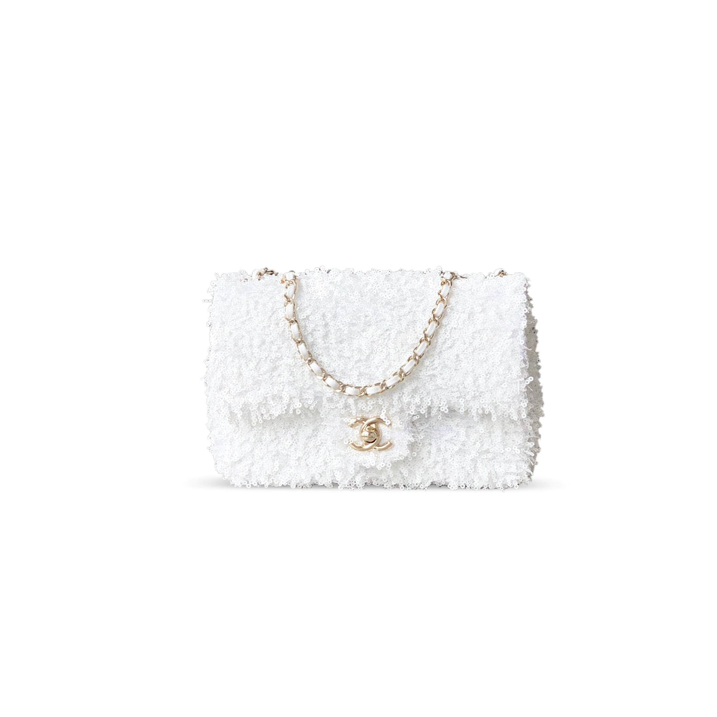 Ch**el SEQUIN LOGO CC SMALL SINGLE FLAP WHITE MULTICOLOR (20*13*6cm) Master Quality