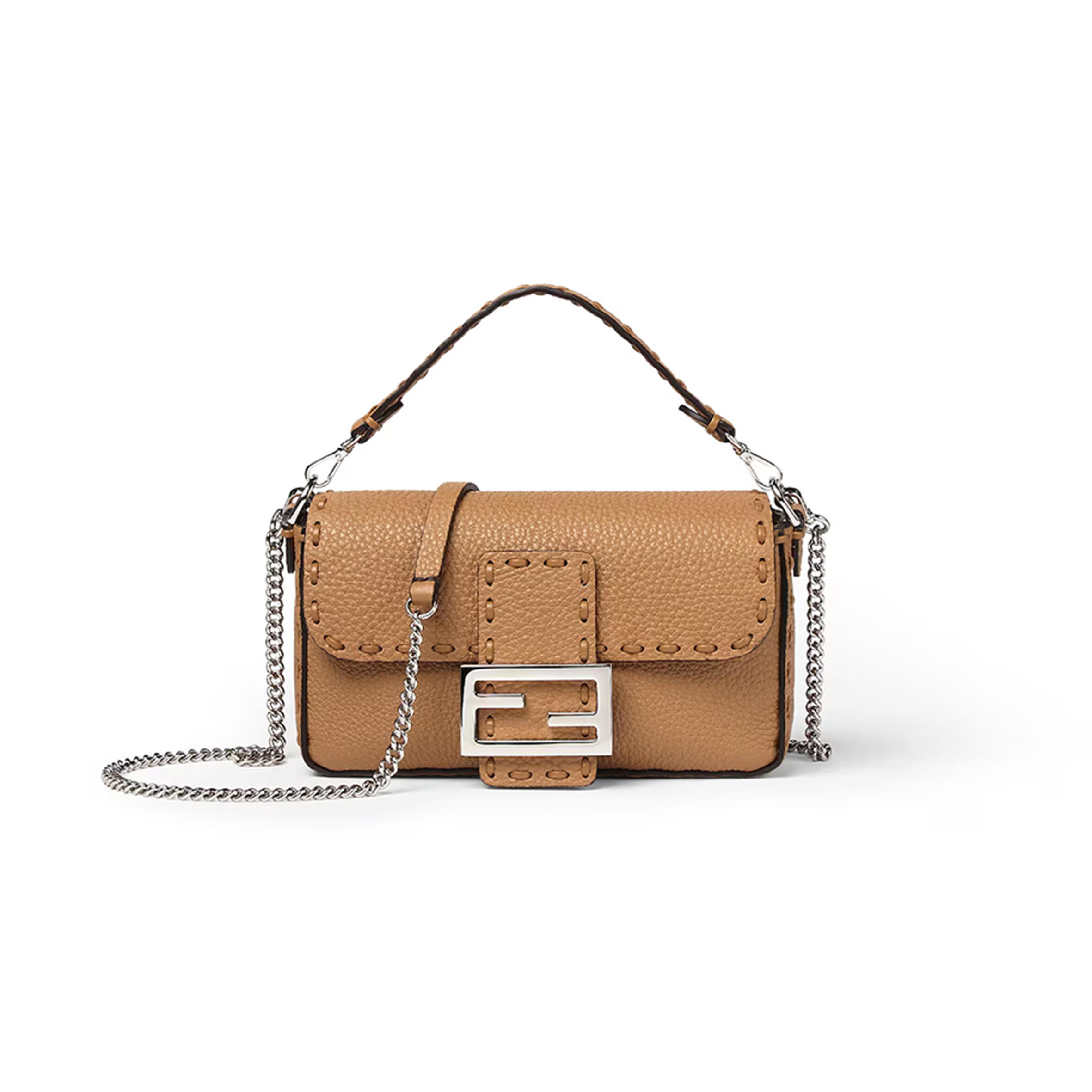 F**di RECYCLED FABRIC JACQUARD VITELLO KING FF 1974 BAGUETTE SOFT TRUNK TOBACCO MORO SAND (21*15*6cm) Master Quality