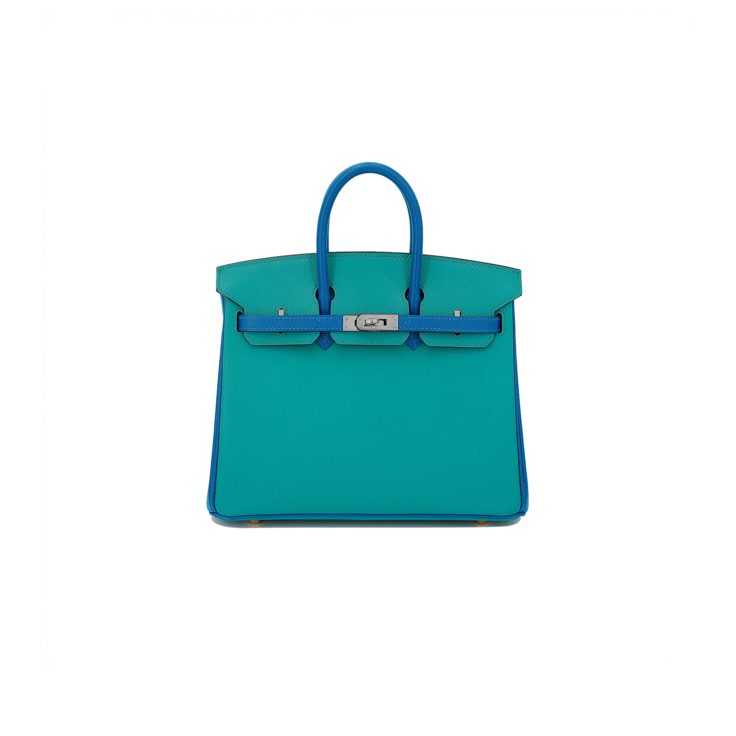 H**me5 BIRKIN 25 EPSOM MALACHITE GREEN AND WATER FAIRY BLUE SILVER BUCKLE BAG H028369CK73 (25*18*13cm) Master Quality