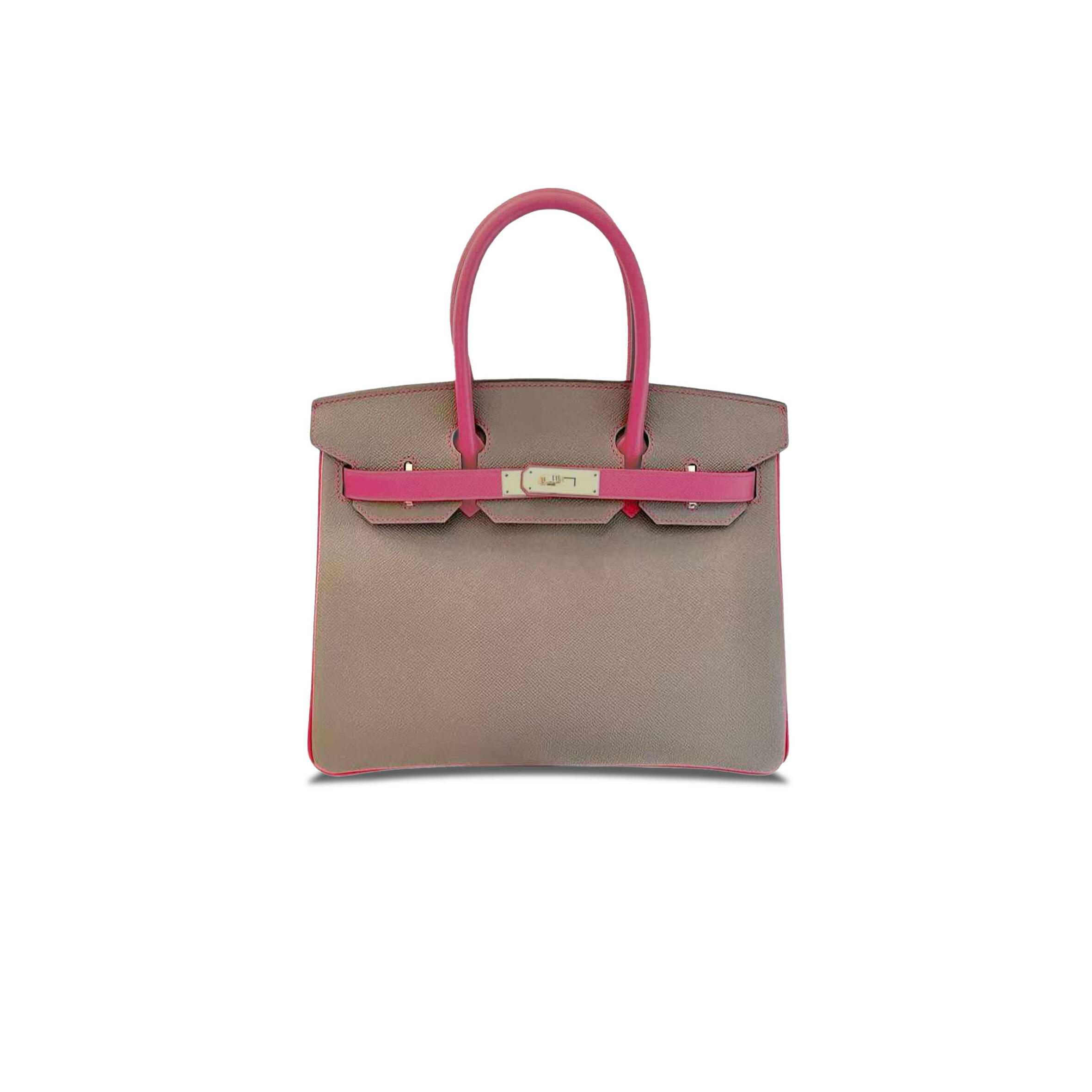 H**me5 BIRKIN 30 EPSOM ELEPHANT GREY AND LIPSTICK PINK GOLD BUCKLE H028369CK6O (30*23*15cm) Master Quality