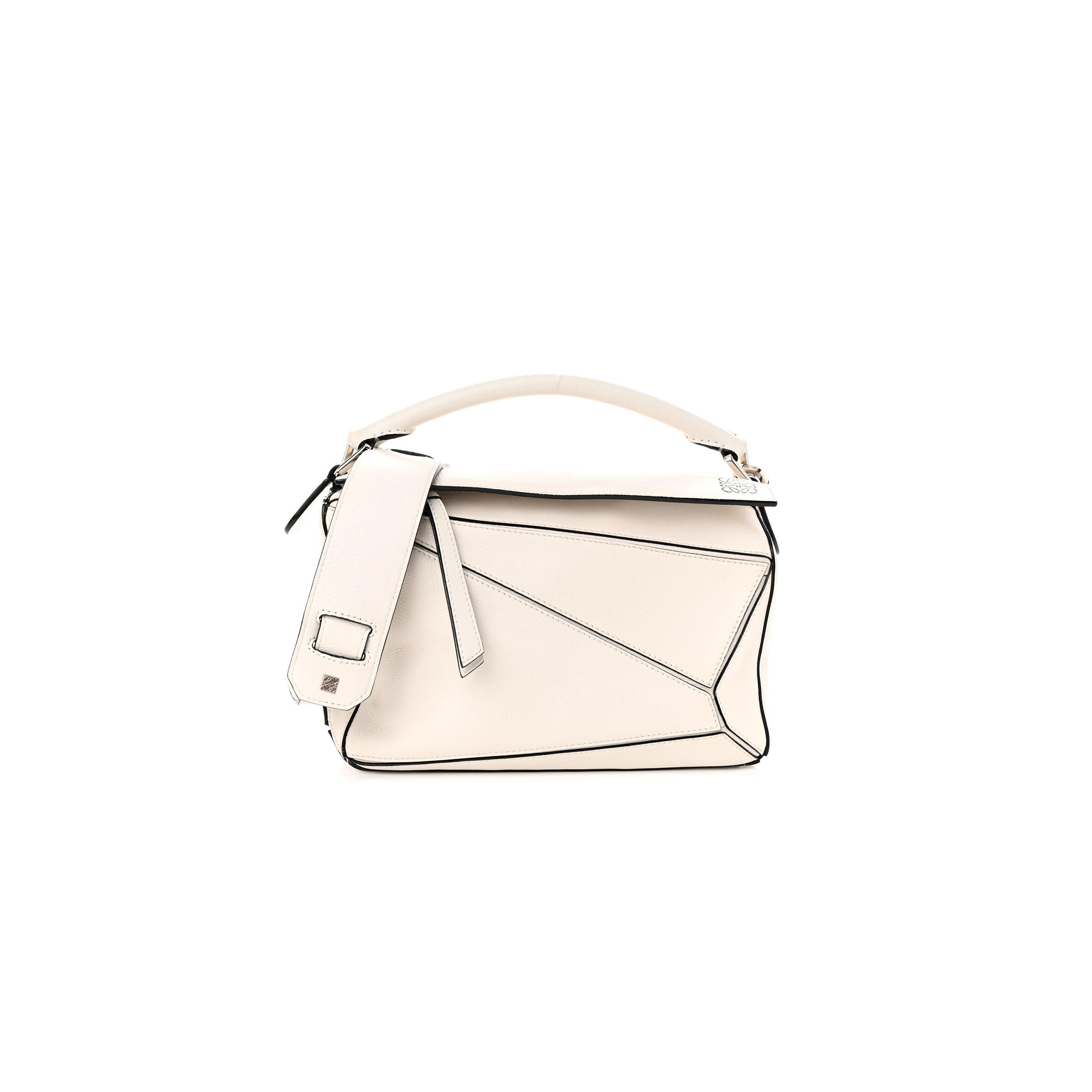L0ew* GRAINED CALFSKIN SMALL PUZZLE BAG WHITE (24*16.5*10.5cm) Master Quality